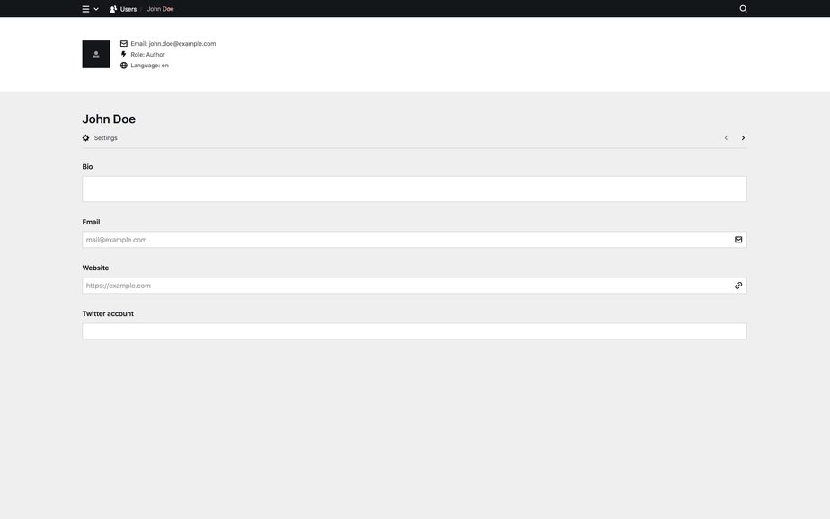Since name and email are default fields, we don't have to define them here. With this blueprint, we now have defined a new user role and can start adding authors with this role.