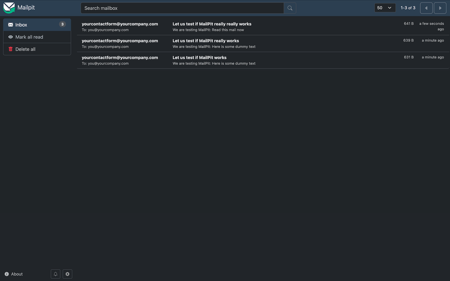 - You can access the MailPit Web UI at http://localhost:8025 (or the port you have configured)