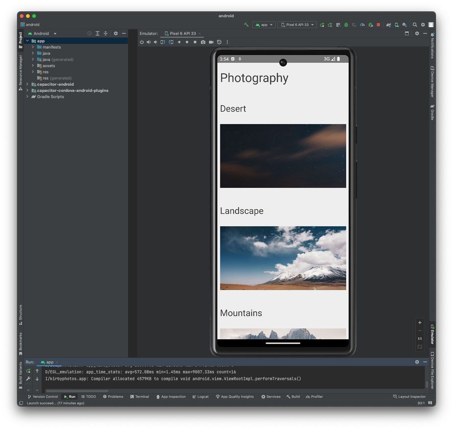 With an Emulator configured in Android Studio, we can go ahead and hit the green Play button on the main toolbar, which will launch the project and allow us to preview it on an emulated device.