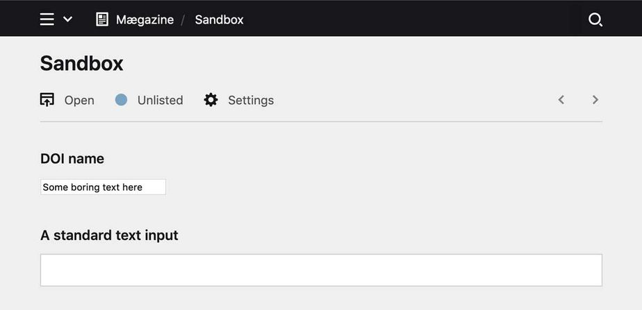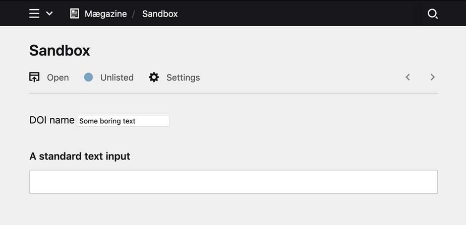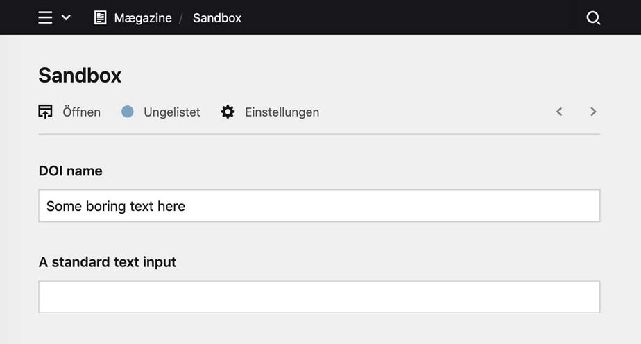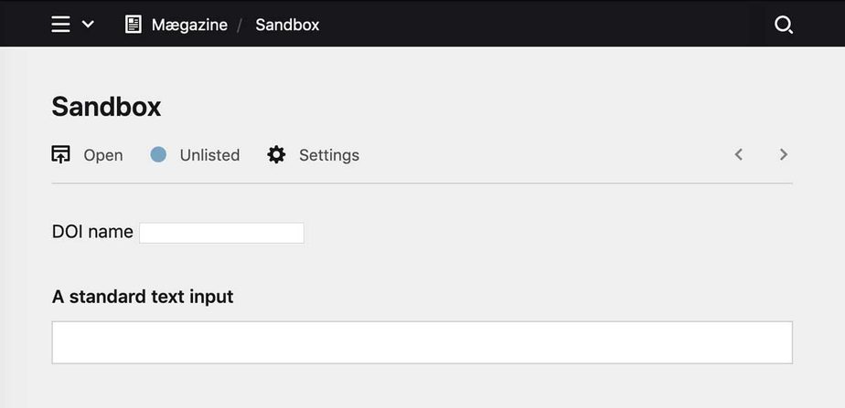 When we open the unlisted Sandbox page in the Panel, we can see the doi field in the Panel: