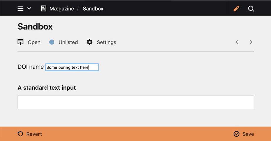 And that's it. When we now return to the Panel, we can edit the field value and as soon as we do so, the orange bar at the bottom pops up, allowing us to either store the new or revert to the original value 🎉.