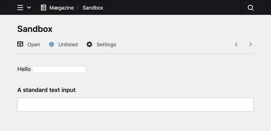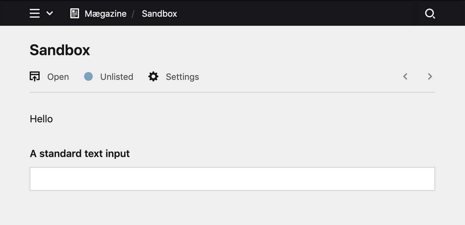 Great, we can now bind the value in the text field to the input. But if we try to change the value in the Panel, nothing will happen yet, no orange save bar will pop up, and we cannot store changes.