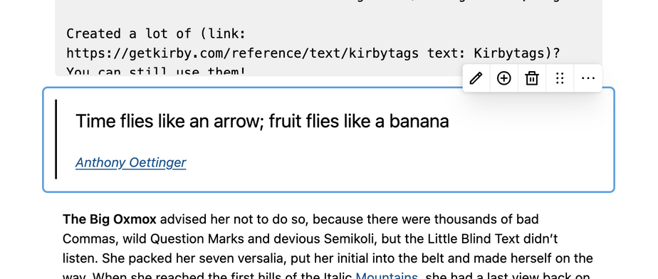 To overwrite this default blueprint, place your custom file in /site/blueprints/blocks/quote.yml.