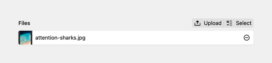 By default, the files field allows you to upload files. You can define the Add button behavior with the uploads option: When clicking on the Add button, you can either select a file and/or upload a file (which is then automatically selected).