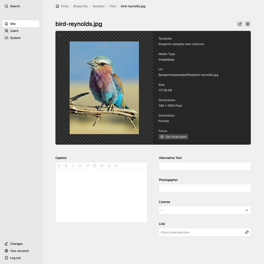 File blueprint with two column layout