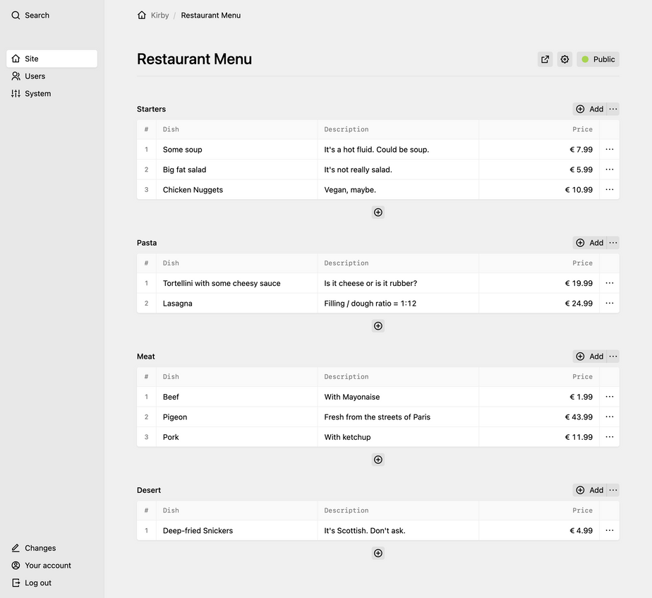 <?php foreach ($page->$category()->toStructure() as $dish): ?>