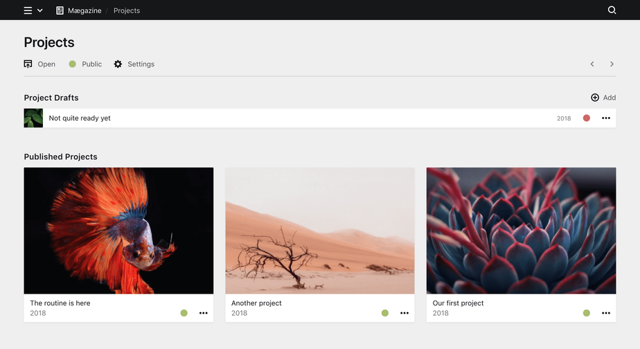 Reusable projects section