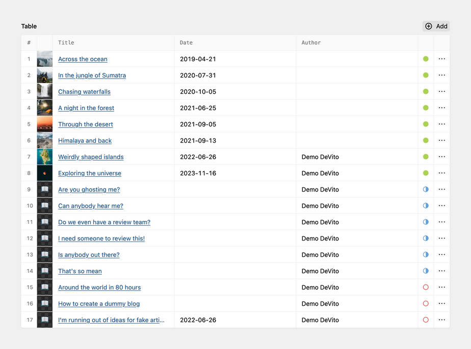 Note that an "Add" button for new pages will only be available if you use either status: draft or status: all.