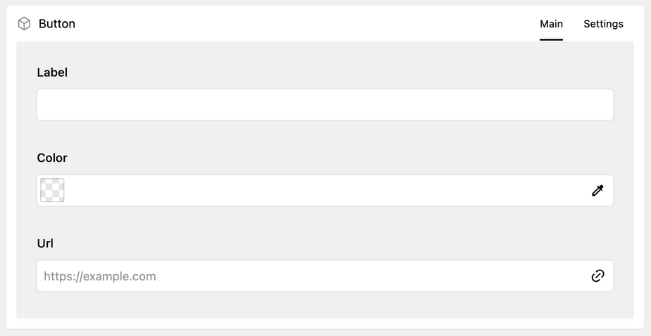 Every block also has access to a content object with all the values of your fields. With {{ content.text }} we can render the value of the text field for the button. {{ content.link }} would print the URL.