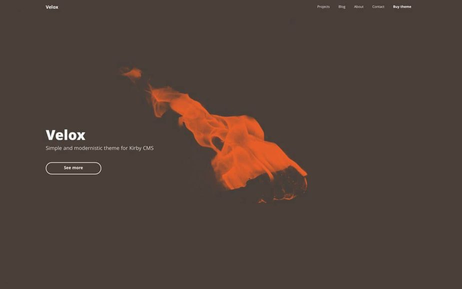 Velox is a universal, multi-purpose theme by Vladimir Yordanov. Like the Kirby Starterkit, it features a blog, project section and some static pages. Built using the Bulma CSS framework.