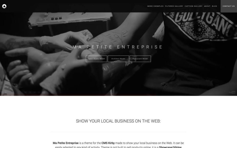 As the French name of this theme created by Constantin Joly suggests, it targets small businesses like a Restaurant, Tattoo Studio or Architect. Features filters, categories, galleries and some customizations.
