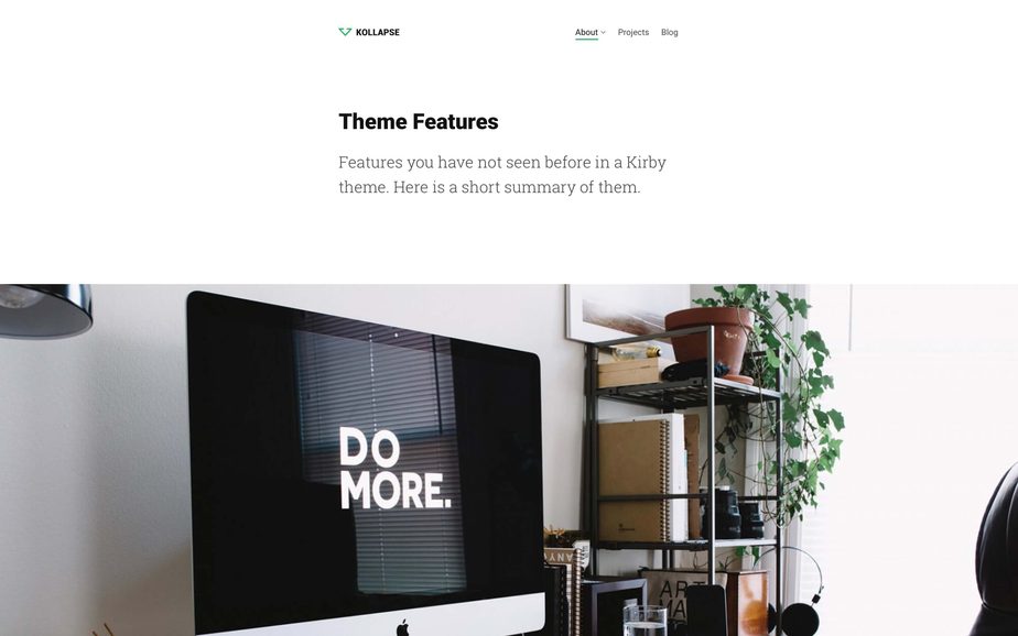 Kollapse is the latest Kirby Theme by Jori Yordanov. It comes with a lot of components and options to customize the theme.