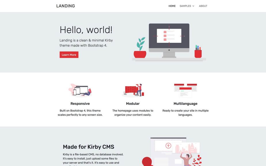 Landing is a Bootstrap-based landing page Kirby theme by Carlos Tur Arrom (commercial).
