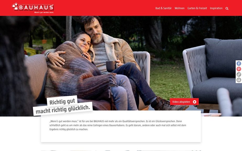Bauhaus is one of the largest DIY store chains in Europe. Richtig gut is a spin-off of their main website with instructions and inspiration around house and garden.