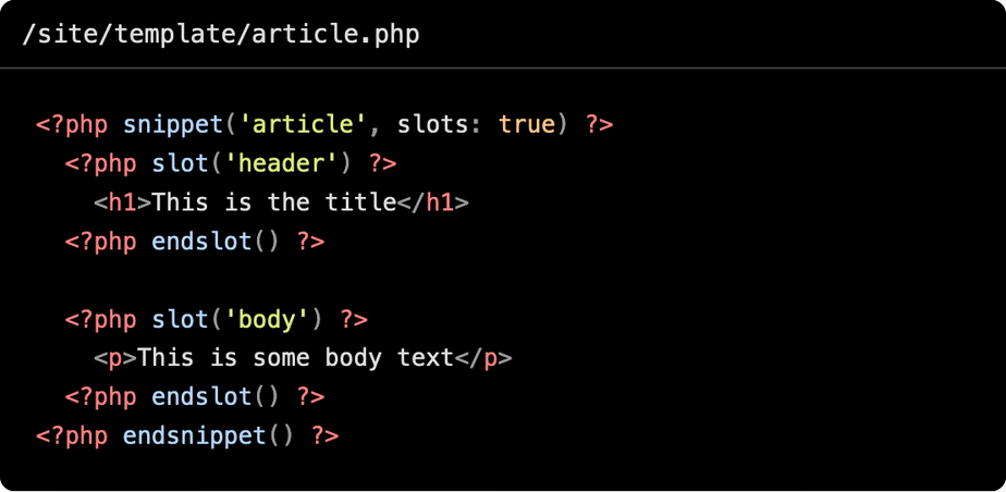 Snippets with slots turn your PHP snippets into rich components. Pass full code blocks into a snippet and output them right in the middle of the snippet where you need them.