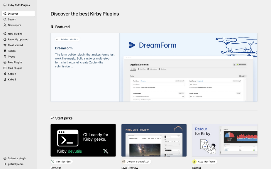 Kirby plugins have a new home: plugins.getkirby.com. It's taking the existing directory of plugins to a whole new level. The highlights: