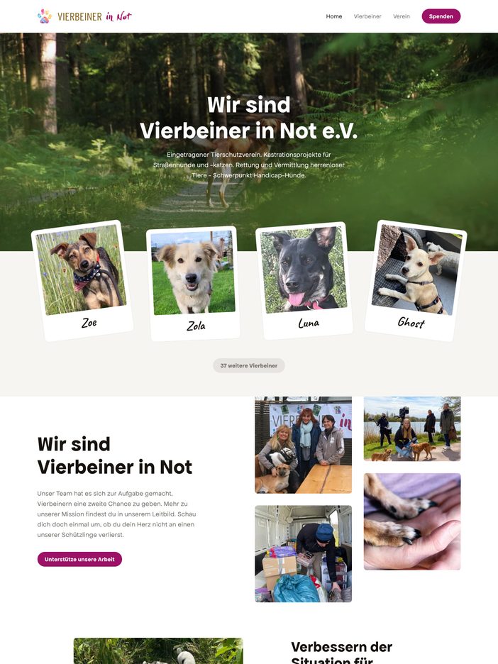 Design, Development, Hosting & Maintenance for Vierbeiner in Not e.V.